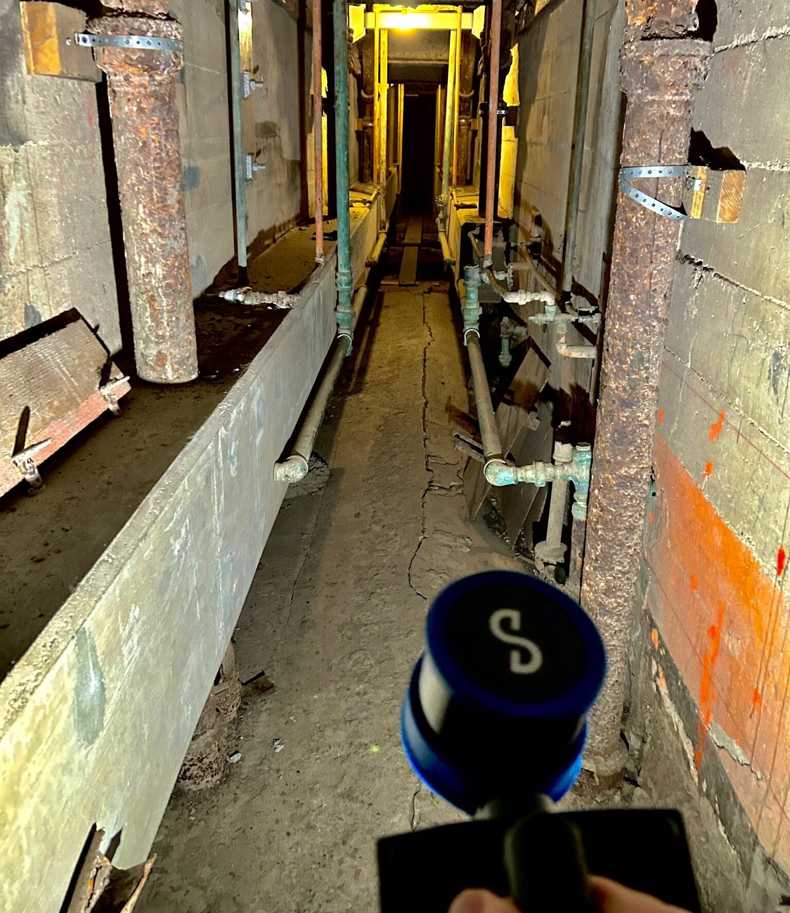 لقد تم تكليفنا بعمل النموذج الأكثر اكتمالاً قدر الإمكان، لذا كان من المهم ألا نترك أي شيء دون أن نهتم به. ومع ذلك، كانت هناك بعض المناطق "المحظورة" على الموظفين بسبب وجود الأسبستوس والرصاص. كان استخدام معدات الوقاية الشخصية وأجهزة التنفس سيتطلب عملية موافقة مطولة وكان من الممكن أن يعرض الموظفين للخطر.