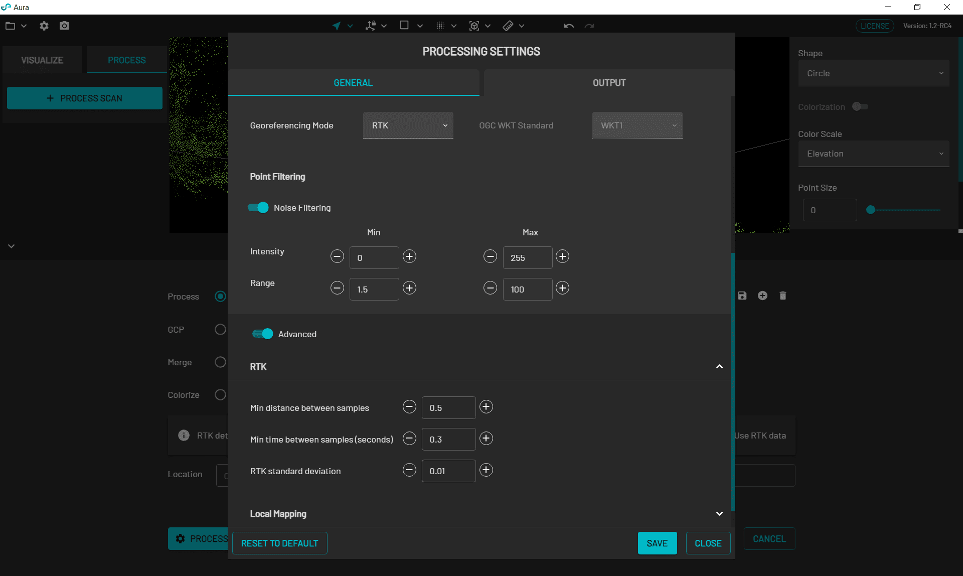 Aura includes a range of cleaning tools to help streamline the process for the operator. These include the SOR (Statistical Outlier Removal), DBD (Decimate by Distance), and Adaptive Noise filters to clean point clouds at the touch of a button.